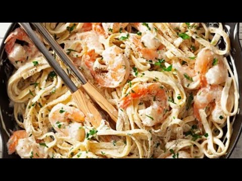 Return the cooked fettuccine, seafood, and veggies to the pan. Toss everything to coat in the Alfredo sauce. Adjust seasoning if needed. -